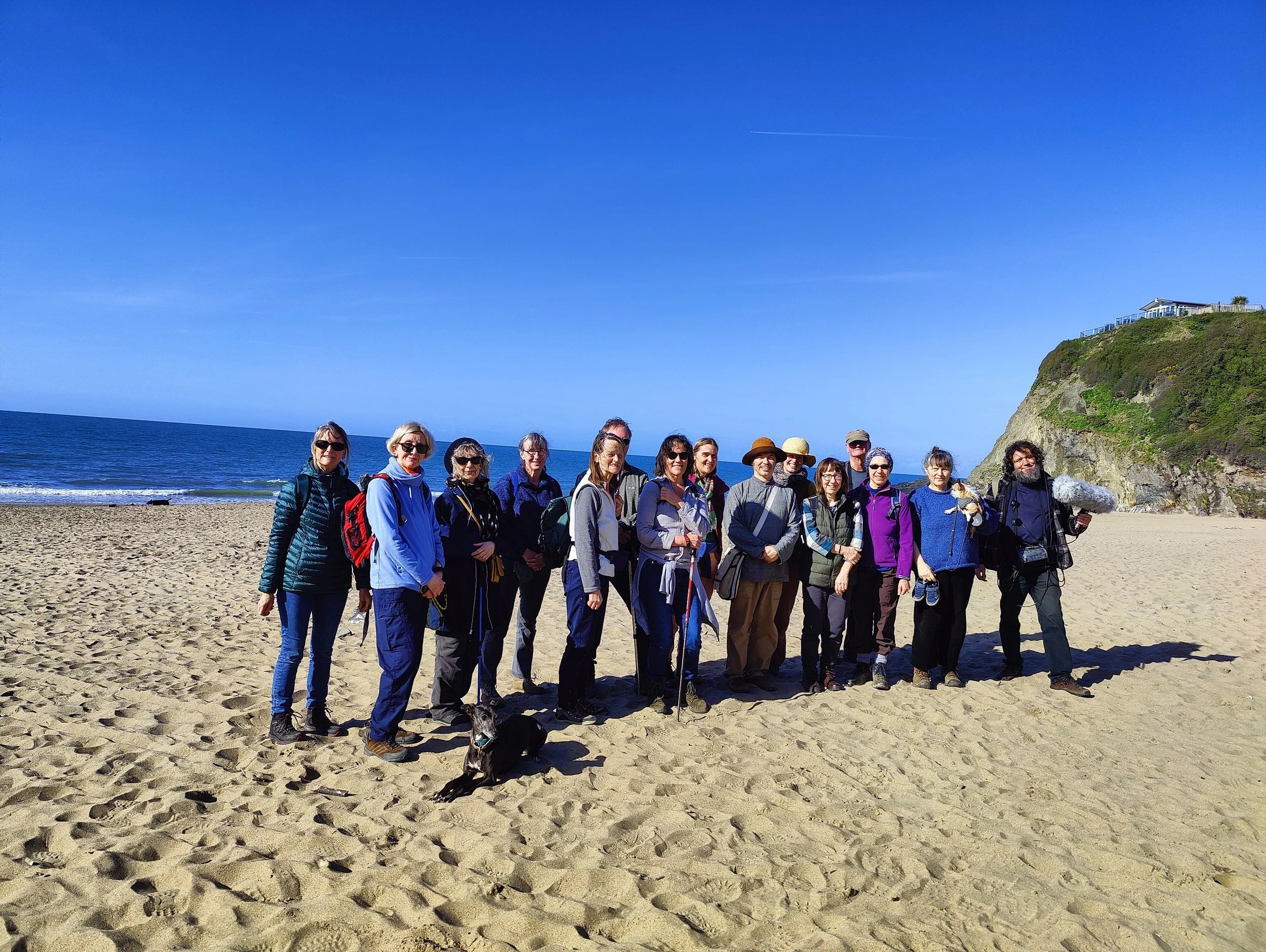 The Allen Raine opera study group and light rambling society walked from Penbryn Church to Tresaith on 20th April 2024. At the Church the group was treated to a short harp recital by Ceri Owen Jones where the programme included the traditional folk tune Morfa’r Frenhines. Ceri also shared knowledge of Welsh herblore with special reference to Allen Raine’s novel Queen of the Rushes. There followed a rendition of Allen Raine’s favourite hymn, ‘When for me the silent oar’, played by former Penbryn Church Organist Amanda Painting. A simple bouquet of Lilys and Rosemary was laid at the grave of the author after a brief reading from her novel On the Wings of the Wind which concluded, “if the dead could speak what would they say to us today?” The assembled then made their way via the Corbalengi Stone down into Tresaith to Bronmor the author’s last residence before descending finally onto the beach where the afternoon’s activity concluded. Thanks to all who took part and to Revd. Matthew Baynham and to the residents of Tŷ Allen Raine. Pictures by Max Thom.